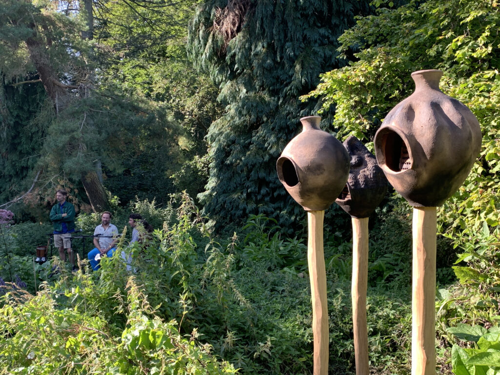 Samtaleværk om forsonende økologi, i en lille nyanlagt have på Liselund